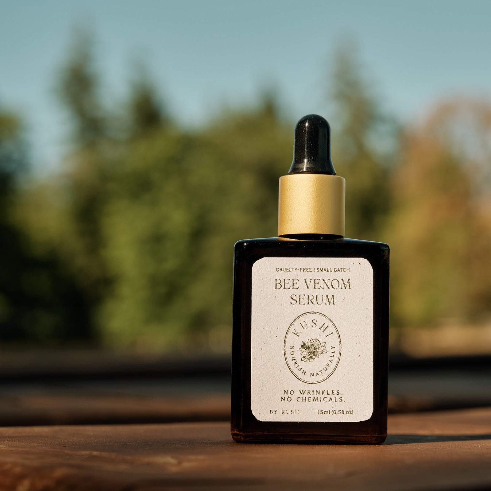 We use a humane and sustainable method to collect bee venom, which involves placing a glass pane near the hive that delivers a gentle electric current. This encourages the bees to release a small amount of venom without causing harm, as the bees are not killed or injured in the process. The venom is then carefully collected and purified for use in our skincare products, ensuring both the well-being of the bees and the quality of our ingredients.